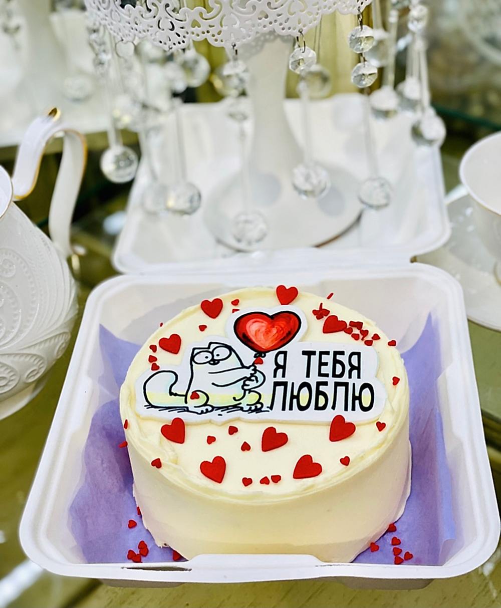 Бенто-торт № 493 (белый бисквит). ПОД ЗАКАЗ ЗА 72 ЧАСА. Декор Pin-Up - кот с сердечко